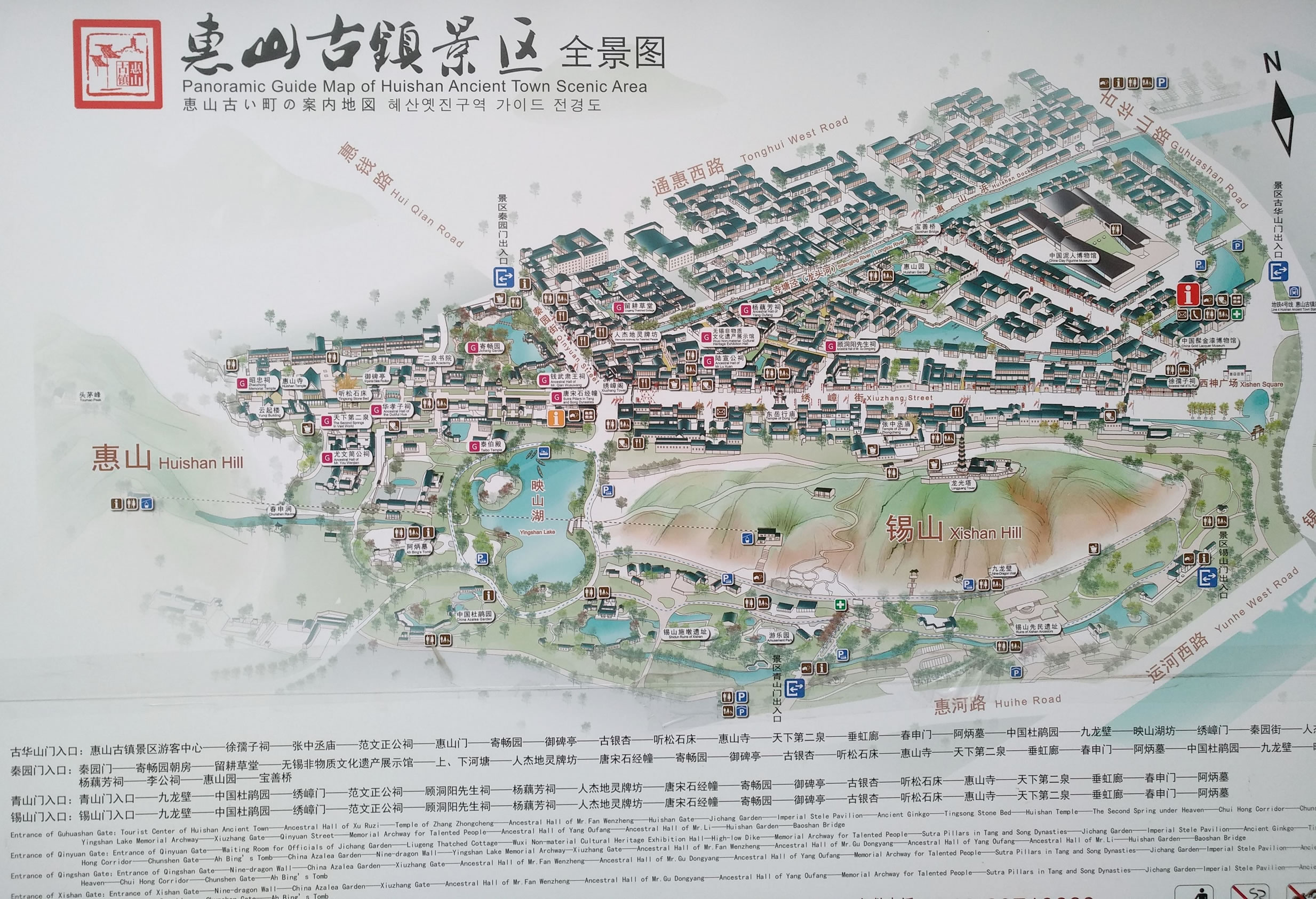 其中,歷史文化街區(qū)位于惠山古鎮(zhèn)景區(qū)東北部。主要景點(diǎn)有惠山鎮(zhèn)祠堂群、中國泥人博物館、關(guān)刀河、東岳行廟、寺塘涇、寶善橋等。
