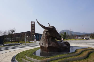 佛頂前苑,牛首山2018年全新景點,以10萬方自然山水和小品景觀展現了牛首山深邃的多元文化。佛頂前苑作為通向佛頂寺、佛頂宮的重要通道,設置了天闕攬勝文化景墻、集賢橋、十牛圖塑石假山、心銘墻、法融廣場、心蓮廣場、停心湖、趣牛園以及晚紅小徑等15處觀景節(jié)點。整體通過三個層次的景致——前景“蜓戲紅蓮水映天”,中景“霧起白虹飄玉帶”,遠景“寺宇山色有無中” 構成一幅靜謐秀麗的山林水墨畫卷,盡顯牛首山“隱秀”的環(huán)境氣質。
