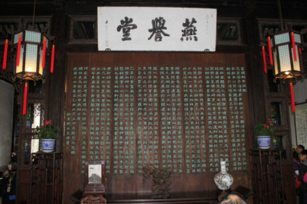 燕譽(yù)堂堂名出自《詩(shī)經(jīng)·小雅·車(chē)舝》“式燕且譽(yù),好而無(wú)射”,意為燕而娛樂(lè)、始終不已之意。燕譽(yù)堂為全園主廳,原是園主宴客所用。此廳是蘇州園林中較為有名的鴛鴦廳。梁上站三位神仙一位小童,有吉星高照的意思。