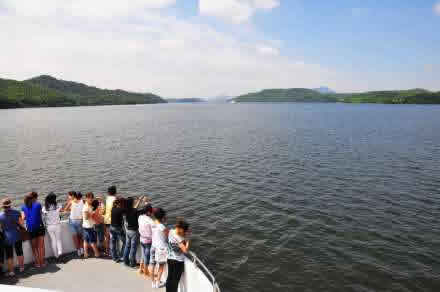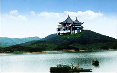 天目湖旅游度假區(qū),位于蘇、浙、皖三省交界處的江南歷史名城,溧陽市境內(nèi),距市區(qū)僅八公里。天目湖東臨煙波浩渺的太湖,北望工業(yè)發(fā)達(dá)的常州,西接六朝古都南京,南連蜿蜒起伏的天目山脈。天目湖旅游度假區(qū)開發(fā)建設(shè)于一九九二年四月,整個度假區(qū)的范圍為三百平方公里,其中包括沙河和大溪兩座國家級大型水庫。這兩大水庫地處天目山的余脈,從空中鳥瞰恰似兩顆明珠鑲嵌于溧陽大地。天目湖湖水來源于蘇、浙、皖三省交界的南山地區(qū),二百五十平方公里的河澗水匯集成湖,總庫容量為三億立方米,總長度為十三公里,水庫最深處為二十八米,平均深度為十米左右。湖區(qū)陸地部分為安山巖和石灰?guī)r,地形較為低緩。湖區(qū)群山環(huán)抱,湖水清冽。湖岸蜿蜒曲折,湖內(nèi)布滿大小島嶼。區(qū)內(nèi)奇花異草,色彩繽紛,野生動物,棲息繁衍,形成完整與和諧的生態(tài)系統(tǒng)。