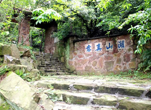 黿頭渚牌樓建于1973年,是前黿頭渚風(fēng)景區(qū)的老大門,是無(wú)錫十八景之首“黿渚春濤”的序幕!包x”是形似海龜?shù)囊环N動(dòng)物,“渚”是指三面臨水的小陸地,因?yàn)樗鼱钊琰x頭而叫黿頭渚。門樓背后刻有“山輝川媚”4個(gè)大字,點(diǎn)出了這里“山不高而秀雅,水不深而遼闊”風(fēng)景的特色。大道前面,有300米的杜鵑坡,杜鵑花是無(wú)錫市的市花,清明時(shí)節(jié)樹叢、林下、溪邊的杜鵑花開遍山野,映的滿山都是紅色。兩邊是香樟樹,它是無(wú)錫的市樹。