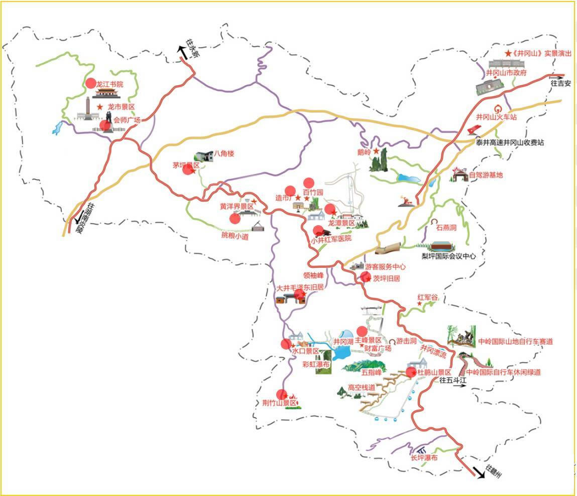 與部分城市里程:南昌352公里、吉安市131公里、贛州市181公里、泰和縣110公里、遂川縣88公里、距湖南省長沙市365公里、茶陵144公里、炎陵88公里。 |