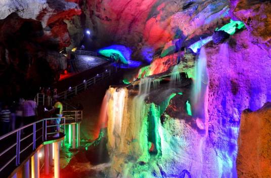洞內(nèi)常年恒溫18度冬暖夏涼。洞內(nèi)景點(diǎn)多達(dá)一百余個(gè),如:天堂大廳、童子拜觀音、千丘梯田、倒柳垂楊、許愿池、回龍廳等。最為壯觀的是洞內(nèi)的洞天飛瀑,它高九米寬七米,天然瀑布水從九米高的上空直奔洞池,濺起無數(shù)水花,聲勢浩大聲撼震天,為此洞一絕。清風(fēng)、怪石、流泉、飛瀑被稱為“洞中四絕”。