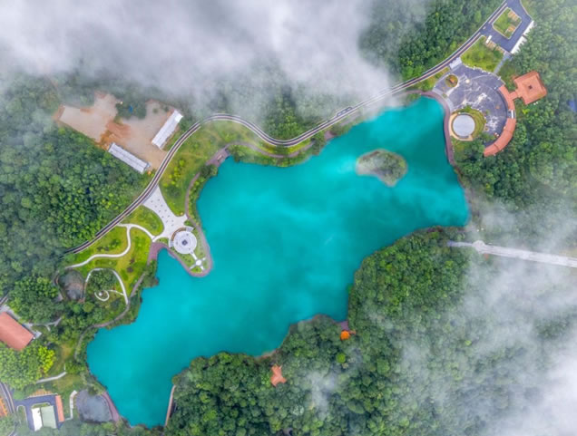 福鰲塘又稱“火山瑤池”,面積300余畝,海拔約900米,是一個天然的山間小盆地。在8億多年前,這里是個火山口,火山噴發(fā)后形成了一個巨大的環(huán)形坑口,雨水和周圍的森林縫隙水匯集到這里,形成了我們現在看到的這個湖。湖水常年保持一定的水位,從不枯竭,所以我們也叫它“源頭火山湖”。