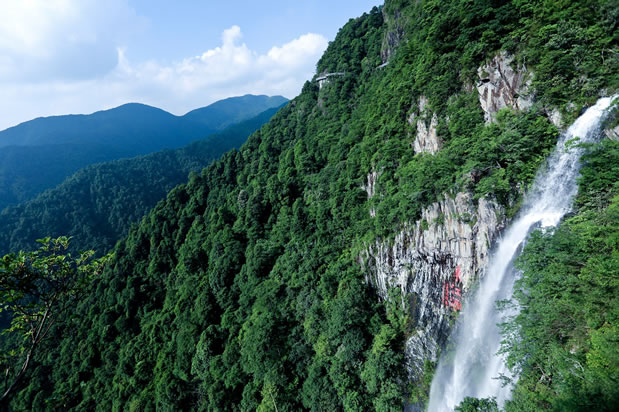 望天瀑,位于福鰲塘東北4公里處。在深山峽谷中瀑布飛流而下,站在瀑底潭邊仰望瀑布,只看見藍天白云,實為壯觀,故名“望天瀑”。