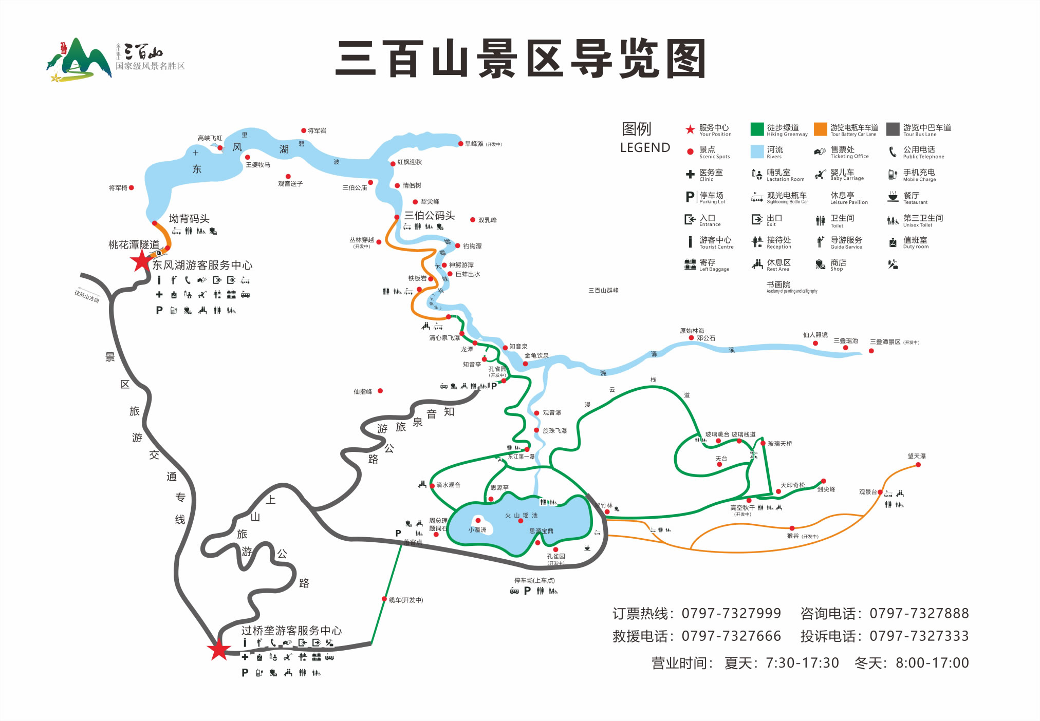 B 線全程游:約 5-6 小時: (三百山游客服務中心—福鰲塘—漫云棧道—玻 璃橋—福鰲塘—知音泉—東風湖—三百山北門游客服16 務中心—三百山游客服務中心 |