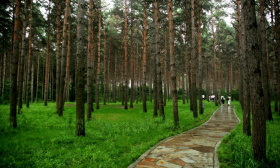 森林浴場種植了4萬平萬米的樟子松林,樟子松特點是樹干底部為灰黑色,上部為紅褐色,外形比較美觀,與長白山的美人松很相像,屬于常綠喬木,最高可達30 米,耐寒性和適應性都很強。這樣完美整齊的樟子松林,在國內(nèi)都屬罕見。橫穿森林浴場的小路是由冰片石鋪成的,取材遼寧本溪,是一種帶有蕨類植物的化石。