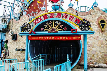 以展示海洋動(dòng)物為主,常年有海豚、白鯨、鯊魚(yú)表演。1995年6月對(duì)游人開(kāi)放,是海底通道式水族館,擁有當(dāng)時(shí)亞洲最長(zhǎng)的118米海底通道,開(kāi)創(chuàng)了中國(guó)第三代水族館建設(shè)的先河。2005年7月,圣亞海洋世界改版,把海洋館與主題樂(lè)園的模式有機(jī)地融合在一起,讓游客如同一出海洋情景劇中的角色,完成“從陸地進(jìn)入海底,再?gòu)暮5谆氐胶I稀钡钠婊寐贸,圣亞海洋世界也因此成為一座情景式海洋主題樂(lè)園。