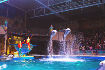 奇幻的360度多維水秀場(chǎng),一段白鯨、海豚的動(dòng)情表演,一段王子、公主的浪漫愛(ài)情,與月光天使、海盜聯(lián)袂演繹真人版的“人魚(yú)童話”。多種藝術(shù)形式、多重情感體驗(yàn),國(guó)際化表演陣容,帶給游客夢(mèng)幻動(dòng)人的童話故事。