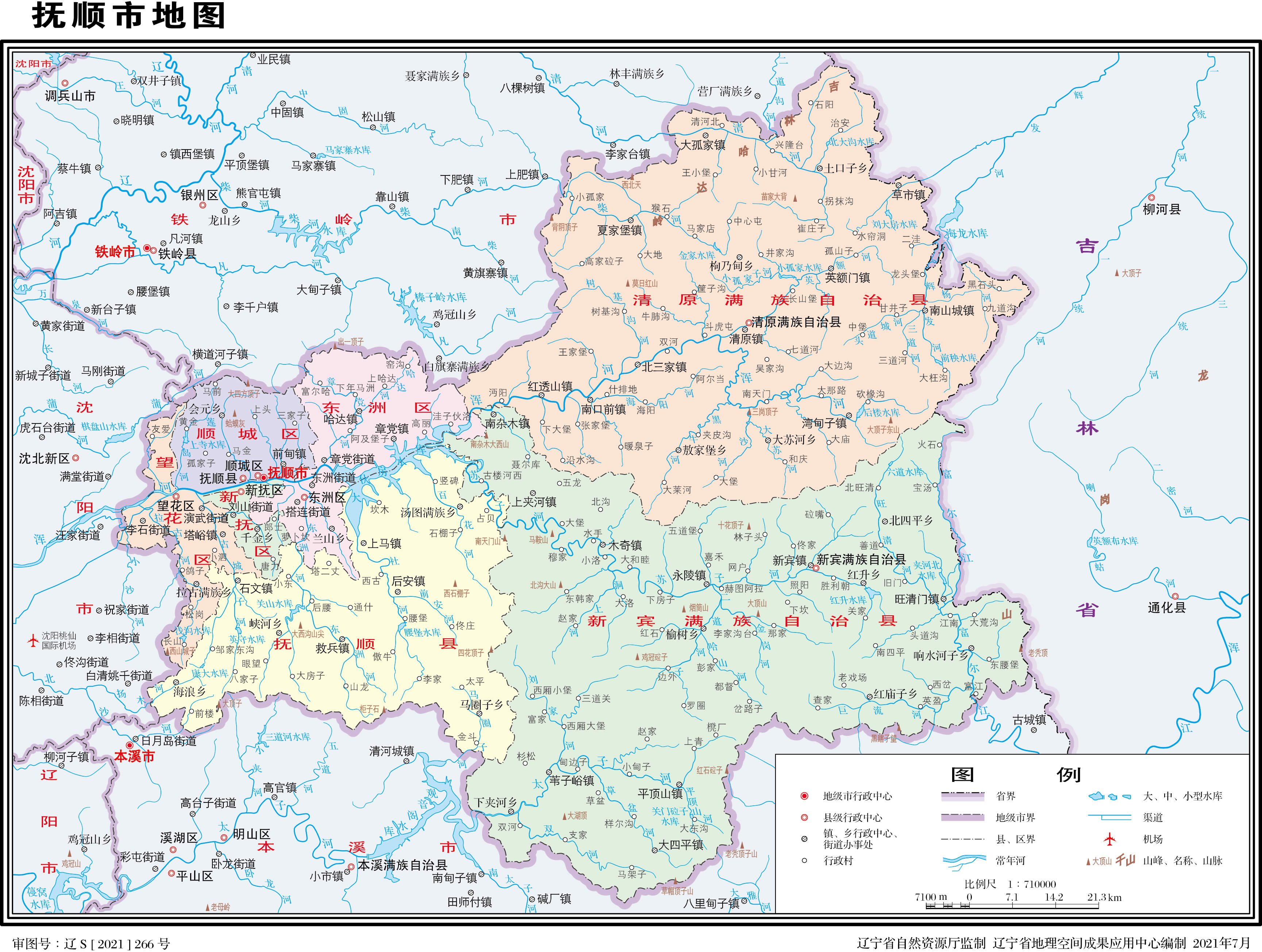 撫順市轄4個(gè)市轄區(qū)、1個(gè)縣、2個(gè)自治縣:
