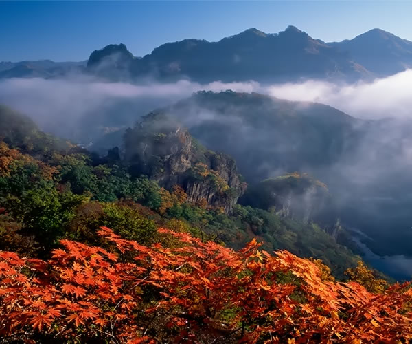 關(guān)門山位于遼寧省本溪縣南部,自古就有“東北黃山”、“東北桂林”之美譽(yù)。因雙峰對(duì)峙,一闊一窄,一大一小,其狀如門,故稱關(guān)門山。