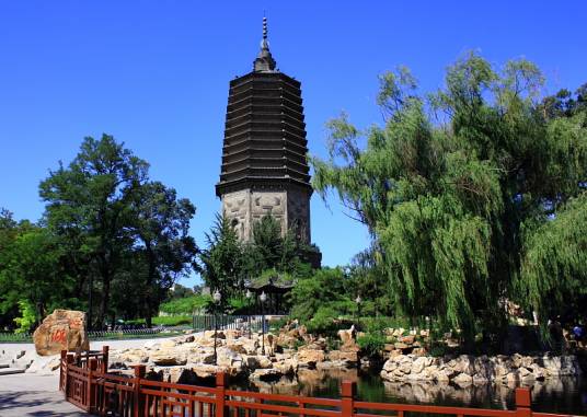 遼陽白塔,位于遼寧省遼陽市站前街道白塔公園內(nèi)。因塔檐間立壁和塔腰八面均涂有白堊,故稱白塔。建于遼朝時期。
