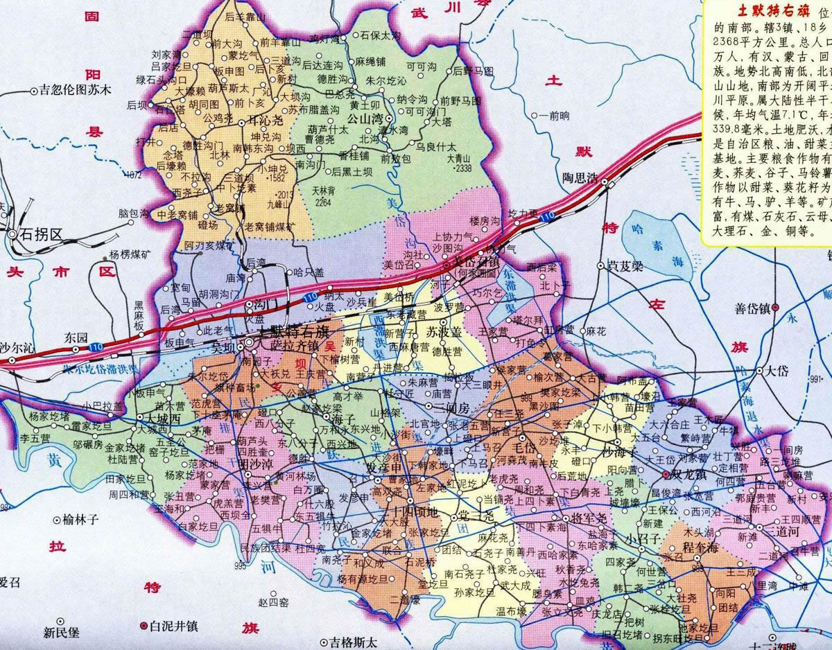 土默特右旗轄5個鎮(zhèn)、3個鄉(xiāng)、2個管委會: