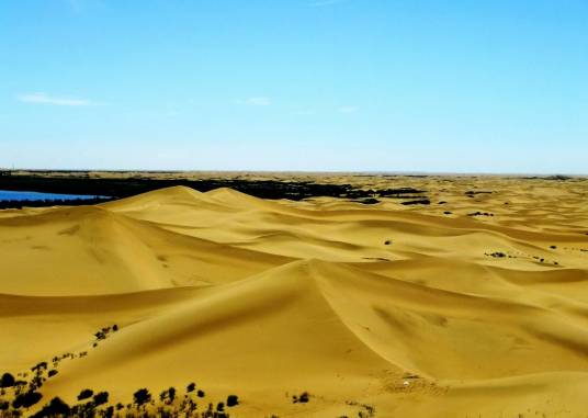 庫布齊沙漠,是中國第七大沙漠,在河套平原黃河“幾”字彎里的黃河南岸(有的人稱河套沙漠),往北是陰山西段狼山地區(qū)!皫觳计洹睘槊晒耪Z,意思是弓上的弦,因?yàn)樗幵邳S河下像一根掛在黃河上的弦。古稱“庫結(jié)沙”、“破訥沙”,亦作“普納沙”。庫布齊沙漠是距北京較近的沙漠。位于鄂爾多斯高原脊線的北部,內(nèi)蒙古自治區(qū)鄂爾多斯市的杭錦旗、達(dá)拉特旗和準(zhǔn)格爾旗的部分地區(qū)。長400公里,寬50公里,總面積約1.39萬平方公里,流動(dòng)沙丘約占61%,沙丘高10~60米,像一條黃龍橫臥在鄂爾多斯高原北部,橫跨內(nèi)蒙古三旗。形態(tài)以沙丘鏈和格狀沙丘為主。