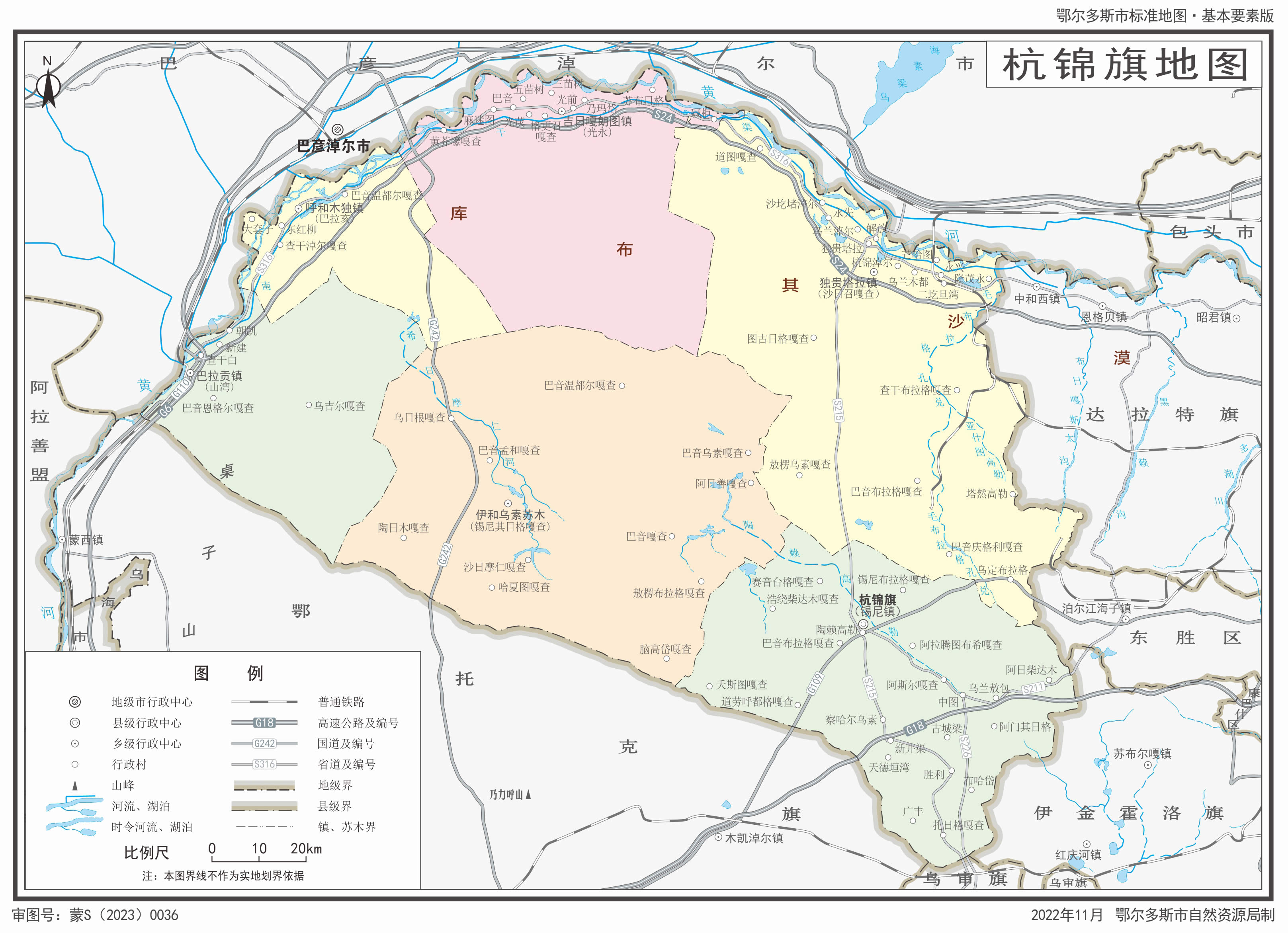 杭錦旗轄5個(gè)鎮(zhèn)、1個(gè)鄉(xiāng)、1個(gè)蘇木: