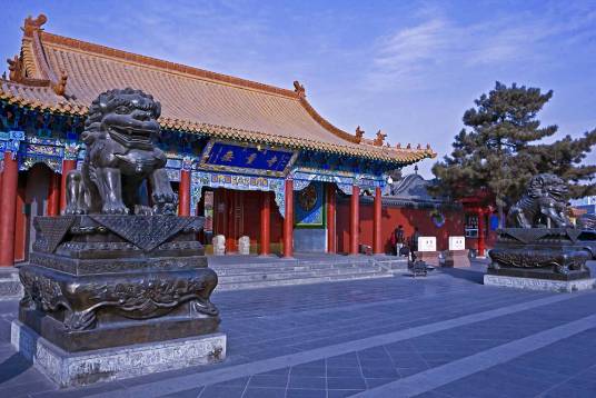 大召,明代稱“弘慈寺”,歷史上又有“銀佛寺”“大乘法輪召”“甘珠爾廟”“帝廟”等多種稱謂。大召,是一座大藏傳佛教寺院,是呼和浩特最早建成的黃教寺院,也是蒙古地區(qū)僅晚于美岱召的蒙古人皈依黃教初期所建的大型寺院之一,屬于格魯派(黃教)。占地面積約3萬(wàn)平方米,其中建筑面積為8000多平方米。大召寺院座北向南,總體布局是伽藍(lán)七堂形制,由正院、東倉(cāng)和西倉(cāng)三大院落單位成,東西兩倉(cāng)各有倉(cāng)門(mén),北端互通構(gòu)成環(huán)繞寺廟的甬道。主軸線上由山門(mén)、天王殿、菩提過(guò)殿、大雄寶殿和九間樓組成。大召的藏品豐富,堪稱大召“三絕”的銀佛、龍雕、壁畫(huà)佛殿內(nèi)的各種彩塑、金銅造像、晾佛節(jié)展開(kāi)的巨幅唐卡、108部的甘珠爾經(jīng)卷,以及宗教活動(dòng)使用的各種法器,面具等都是較珍貴的歷史文物和藝術(shù)珍品。