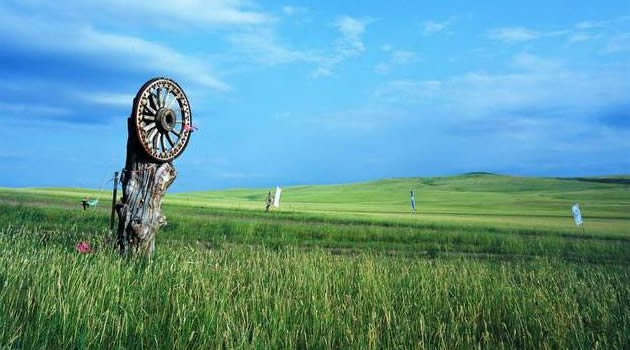 草原氣候區(qū),從東端呼倫貝爾草原至陰山河套平原一帶,冬季冰天雪地,歷達半年之久,平均氣溫為攝氏零下28°c左右。夏、春、秋幾乎相連,五月至九月氣候溫和,是旅游草原最佳季節(jié)。