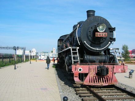 建成于2004年6月。陳列在這里的是一臺(tái)1940年日本制造的“亞西亞”型蒸汽機(jī)車,機(jī)車下面的鐵軌是1925年蘇聯(lián)制造的43鐵軌,這臺(tái)機(jī)車在中華大地上奔馳了半個(gè)多世紀(jì),演繹了生命里程的“三部曲”,留下了許許多多鮮為人知的故事。建國(guó)初毛主席就是乘座這臺(tái)機(jī)車牽引的火車出訪蘇聯(lián)的。機(jī)車號(hào)是 “1861”,“18”代表的是滿洲里到俄羅斯后貝加爾斯克的距離,即18里!61”是代表毛澤東在滿洲里期間,曾對(duì)駕駛這輛火車頭的司機(jī)長(zhǎng)說(shuō)過(guò)六句話:一定要與蘇聯(lián)同志搞好友鄰關(guān)系,一定要注重少數(shù)民族地區(qū)的相互團(tuán)結(jié),一定要保障軍用列車的安全,一定要多學(xué)文化,一定要克服天氣寒冷帶來(lái)的困難,一定要注意身體。毛主席回國(guó)后,向全國(guó)人民發(fā)出了建設(shè)社會(huì)主義新中國(guó)的偉大號(hào)召。從1950年到1965年,這臺(tái)機(jī)車歡快地馳騁在祖國(guó)建設(shè)的鋼鐵運(yùn)輸線上,立下了不可磨滅的功勛。因此,滿洲里人民又命名它為“滿洲里號(hào)”。