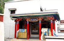 原名努尼殿,是供僧人靜坐休持的殿,用于喇嘛們以逐漸減少飲食,靜坐默誦,力圖不食不語的修行方式去解脫超度眾生靈。后來毀于文革動(dòng)亂。2003年國家撥款在遺址上恢復(fù)并擴(kuò)建此殿,2005年9月開始對(duì)外開放,全殿上下兩層,一樓為佛堂,供有千手千眼觀音像、六世班禪大師、宗喀巴大師像,正中供奉的三世佛為銅鑄鍍金佛像。墻上所繪壁畫是藏傳佛教九大佛寺壁畫。