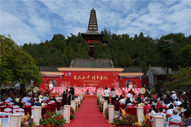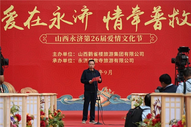 9月 21 日,普救寺迎來了第 26 屆愛情文化節(jié)的盛大開幕式。開場節(jié)目《蒲州花傘》瞬間將人們帶入了濃郁的地域風(fēng)情之中。隨后,主持人隆重介紹到場領(lǐng)導(dǎo)嘉賓。永濟(jì)市政府黨組成員崔子龍發(fā)表了誠摯而熱情的致辭,表達(dá)了對愛情文化節(jié)的美好祝愿和對永濟(jì)文化旅游事業(yè)的殷切期望。市委宣傳部部長李朝霞宣布開幕,正式拉開了本次愛情文化節(jié)的精彩帷幕。