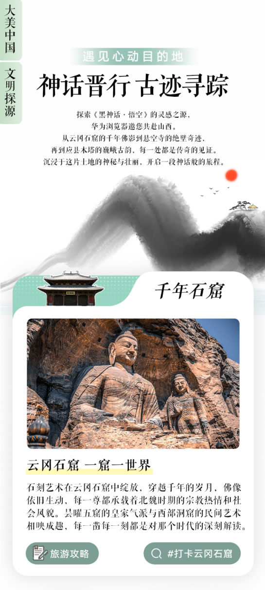 華為瀏覽器的“遇見心動目的地”專題還將于9月29日上線大美中國、文明探源、神話晉行專題,包括大同懸空寺、朔州崇福寺、應(yīng)縣木塔、臨汾鐵佛寺等《黑神話:悟空》游戲中的取景地都會有相應(yīng)的旅游攻略。專題還會根據(jù)旅游的目的地和路線的不同,提供多種不同的行程方案,可以根據(jù)自身的實際情況進(jìn)行挑選,讓我們的旅程變得無比充實!