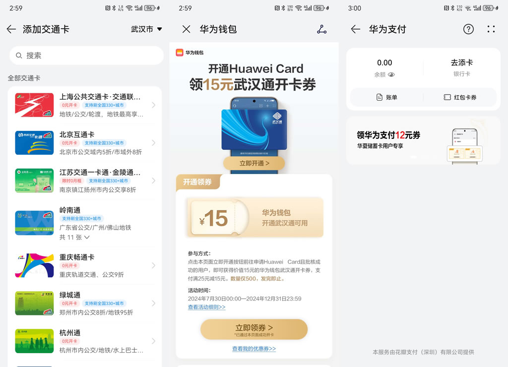 值得一提的是,華為錢包在國慶節(jié)期間還帶來了不少福利,比如開通公交卡0元起,一張卡就可刷全國330多個旅游城市;新用戶開卡充值交通卡還有特別折扣,9月23日至10月7日最高立減5元;如果需要高精度定位服務(wù)和車道級導(dǎo)航,新用戶使用華為錢包開卡首年0元,在負(fù)一屏充值手機(jī)話費或者加油時也可享受首單立減6元等優(yōu)惠。綁定銀行卡也有各種立減活動,十分劃算!
