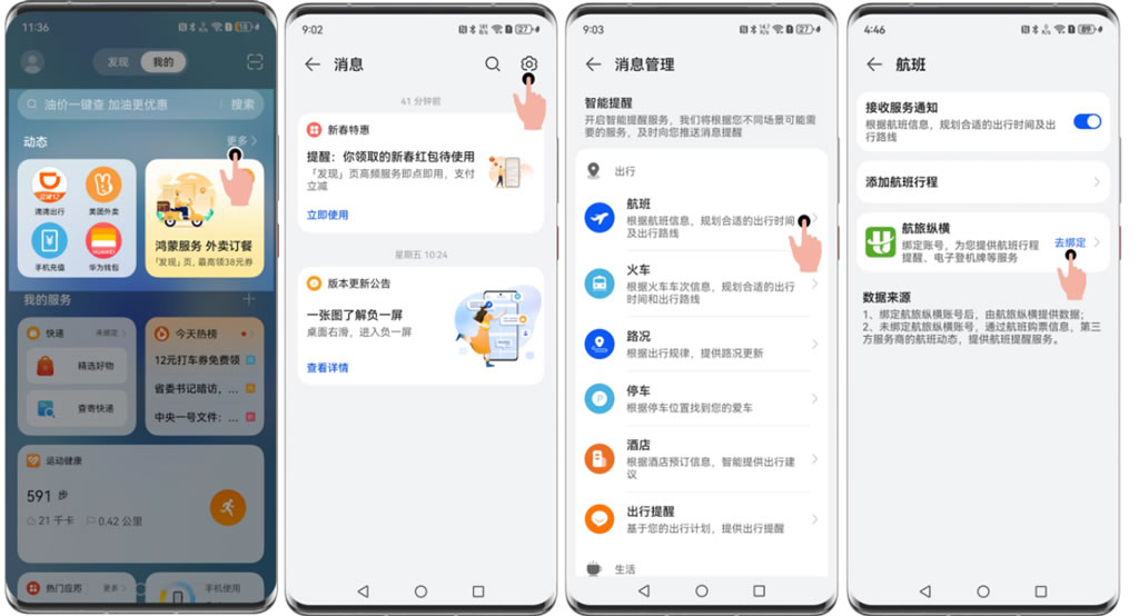 除了上面介紹的三個主要功能之外,華為手機(jī)的實用功能還有很多,比如華為Pura 70系列、Mate 60系列等機(jī)型只需要喚醒智慧助手小藝,就可以讓它根據(jù)目的地等條件編寫一篇使用的旅游攻略。甚至智慧識別判斷用戶是否需要出行服務(wù),并通過卡片實時顯示高鐵、航班或者打車信息。通過手機(jī)負(fù)一屏,右劃一下,也可以很方便的調(diào)用“航旅縱橫”值機(jī),或者“鐵路12306”乘坐高鐵。