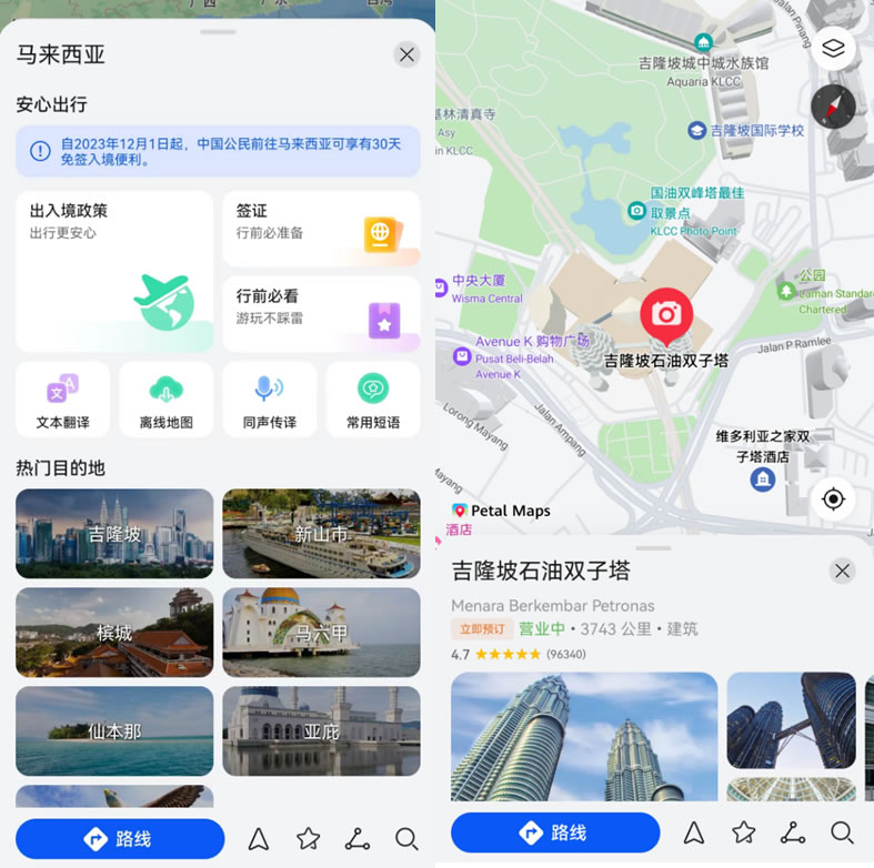 不用怕!Petal Maps是更適合中國寶寶的導(dǎo)航。它不僅原生默認(rèn)支持中文界面和語言導(dǎo)航,還能提供覆蓋全球 160+ 國家和地區(qū)的詳細(xì)地圖數(shù)據(jù),豐富的地理位置信息和精準(zhǔn)的路線規(guī)劃,能帶你輕松抵達(dá)目的地,發(fā)現(xiàn)隱藏的景點和美食。