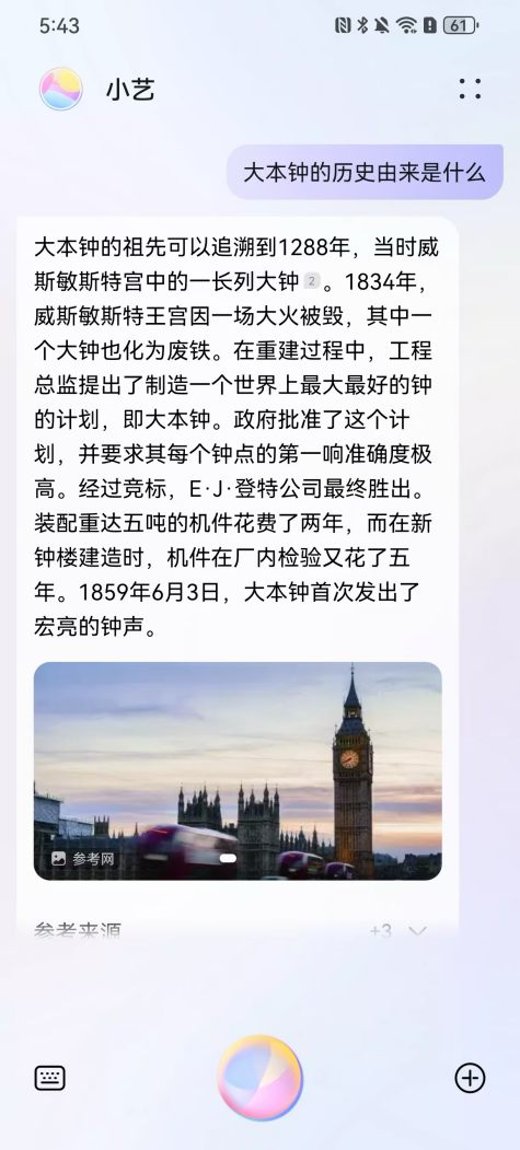 旅行途中遇到任何問題,都可以向華為手機(jī)“問一問”。借助強(qiáng)大的AI技術(shù)底座,華為智慧助手小藝能夠理解你的需求,并提供精準(zhǔn)的答案和建議。例如,當(dāng)你漫步在倫敦街頭,被雄偉的大本鐘所震撼,卻對它的歷史一無所知時,只需對著手機(jī)問小藝:“大本鐘的歷史由來是什么?”,小藝就能為你娓娓道來它的前世今生,讓你對這座城市的歷史文化有更深入的了解。 或者,當(dāng)你站在巴黎圣母院前,想要了解這座哥特式建筑的藝術(shù)風(fēng)格,也可以向小藝提問,它會為你詳細(xì)介紹圣母院的建筑特點和歷史意義。