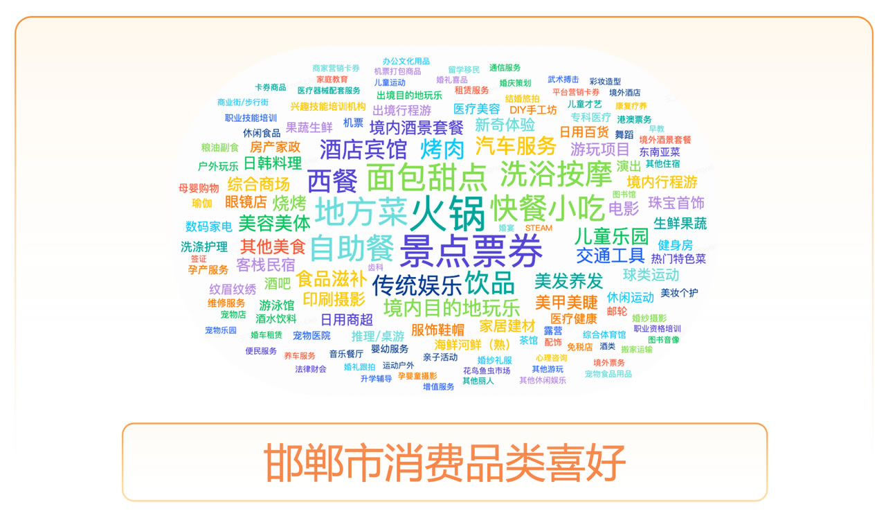 近期,邯鄲在文旅迸發(fā)出無限活力,暑期、春節(jié)出現(xiàn)了兩次明顯的交易高峰,主要表現(xiàn)在游玩、美食、休閑娛樂賽道,在TOP100商家中這些賽道占據(jù)了63.54%的交易份額,強(qiáng)勁的爆發(fā)系數(shù)讓我們看到了邯鄲文旅的巨大潛力。