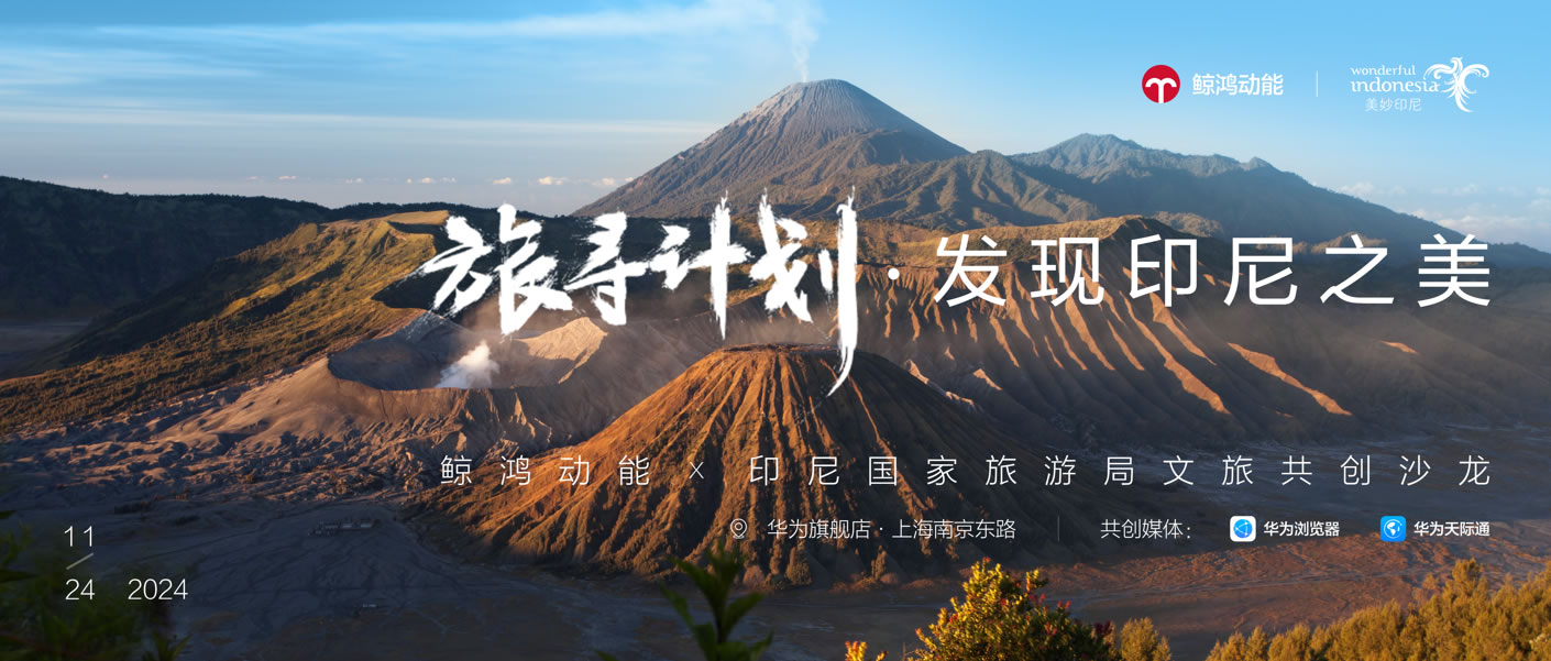 11月24日,鯨鴻動能攜手印尼國家旅游局,在華為旗艦店·上海南京東路舉辦了「旅尋計劃▪發(fā)現(xiàn)印尼之美」文旅共創(chuàng)沙龍活動;顒蝇F(xiàn)場人潮涌動,線上數(shù)百萬消費者同步感受活動盛況。