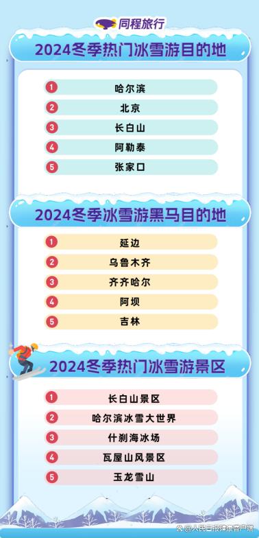 同程旅行2024冬季冰雪游趨勢(shì)報(bào)告中的部分排名。同程研究院 圖