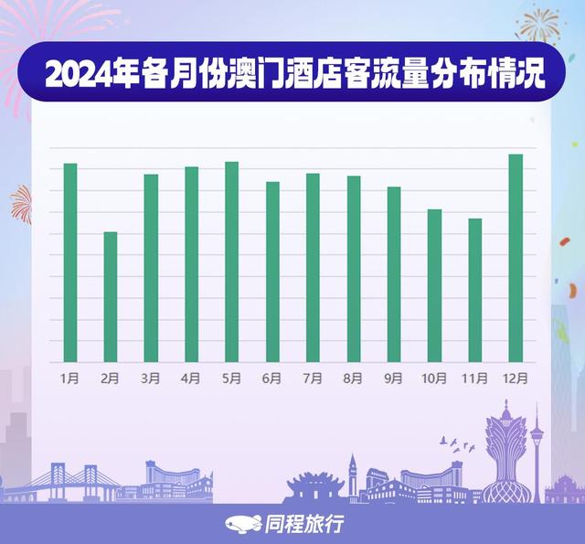 澳門回歸25周年慶;顒(dòng)營(yíng)造的節(jié)日氛圍吸引了大量?jī)?nèi)地游客的關(guān)注。平臺(tái)數(shù)據(jù)顯示,2024年1至12月份澳門當(dāng)?shù)鼐频杲哟齼?nèi)地游客的高峰時(shí)段出現(xiàn)在1月份和12月份,其中尤以12月份客流量最大,占全年總客流量近10%,占比較往年有所上升。