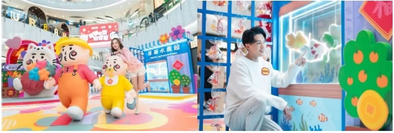 “貨架”上掛滿一包包金魚(yú)小袋,讓人瞬間仿若置身于金魚(yú)街。厚面水族館萌趣十足的金魚(yú)在水中自在游動(dòng),傳遞著新春金玉滿堂的祝福。悠閑逛完金魚(yú)街的厚面父子,大手拉小手開(kāi)心來(lái)到MOKO 準(zhǔn)備買(mǎi)買(mǎi)買(mǎi)。