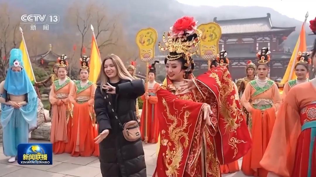 在陜西,多個(gè)國(guó)家的游客、留學(xué)生在華清宮等景區(qū),體驗(yàn)中國(guó)傳統(tǒng)文化。在四川,來(lái)自美國(guó)、俄羅斯、西班牙等國(guó)的游客,通過現(xiàn)場(chǎng)觀影、文化體驗(yàn)、古跡探訪等多種形式感受巴蜀文化。