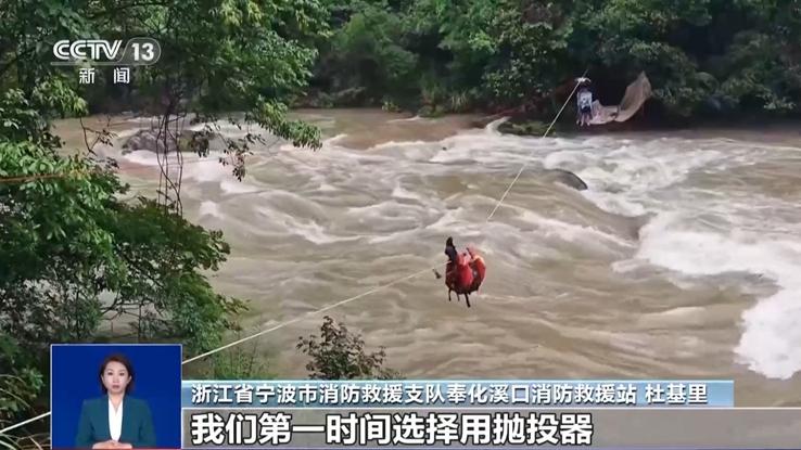 前段時(shí)間,受強(qiáng)降雨影響,浙江省寧波市奉化區(qū)溪口鎮(zhèn)附近河水水位暴漲。在升綱村附近河岸邊露營過夜的兩人被水圍困。