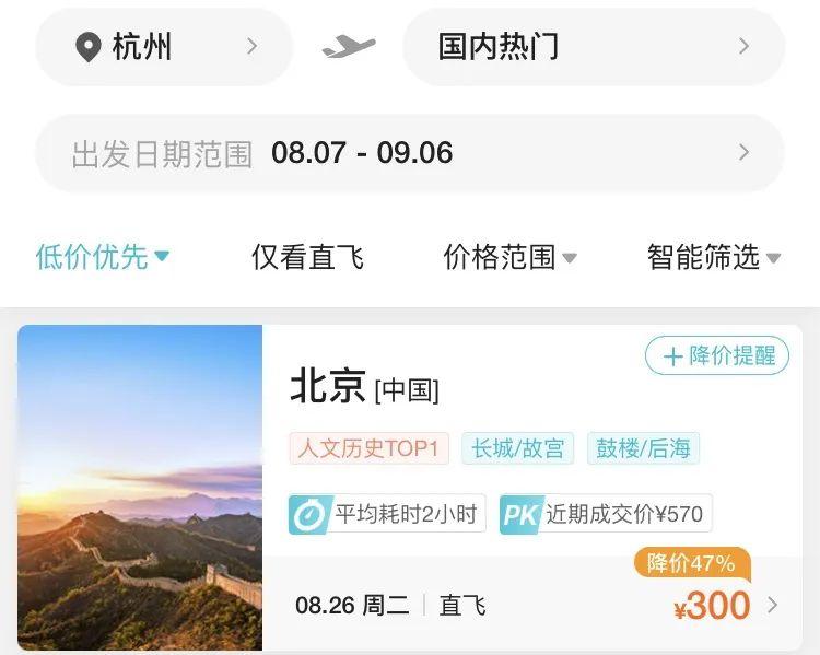 “感覺今年暑假的機(jī)票比往年便宜,今年臨近出發(fā)日期,反而比我提前訂的往返機(jī)票便宜了300多元。”進(jìn)入8月,不少小伙伴發(fā)現(xiàn),最近浙江多地出發(fā)的國內(nèi)機(jī)票出現(xiàn)好價,部分熱門目的地300元起就可飛。
