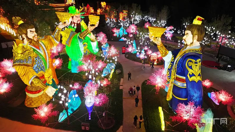 “快看,涿水女神在眨眼!”孩童驚呼引來(lái)眾人駐足。運(yùn)用動(dòng)態(tài)LED技術(shù),絹紗背后的女神眼眸流轉(zhuǎn),讓古老傳說(shuō)瞬間鮮活。12米的“桃園三結(jié)義”燈組搭配實(shí)景情景劇,讓“三國(guó)演義從涿州開(kāi)篇”的故事跳出書(shū)本。盧植、酈道元等先賢燈廊下,游客們借著暖光,細(xì)細(xì)品讀他們的生平,風(fēng)過(guò)廊下,燈影輕搖,宛如歷史在耳邊回響。
