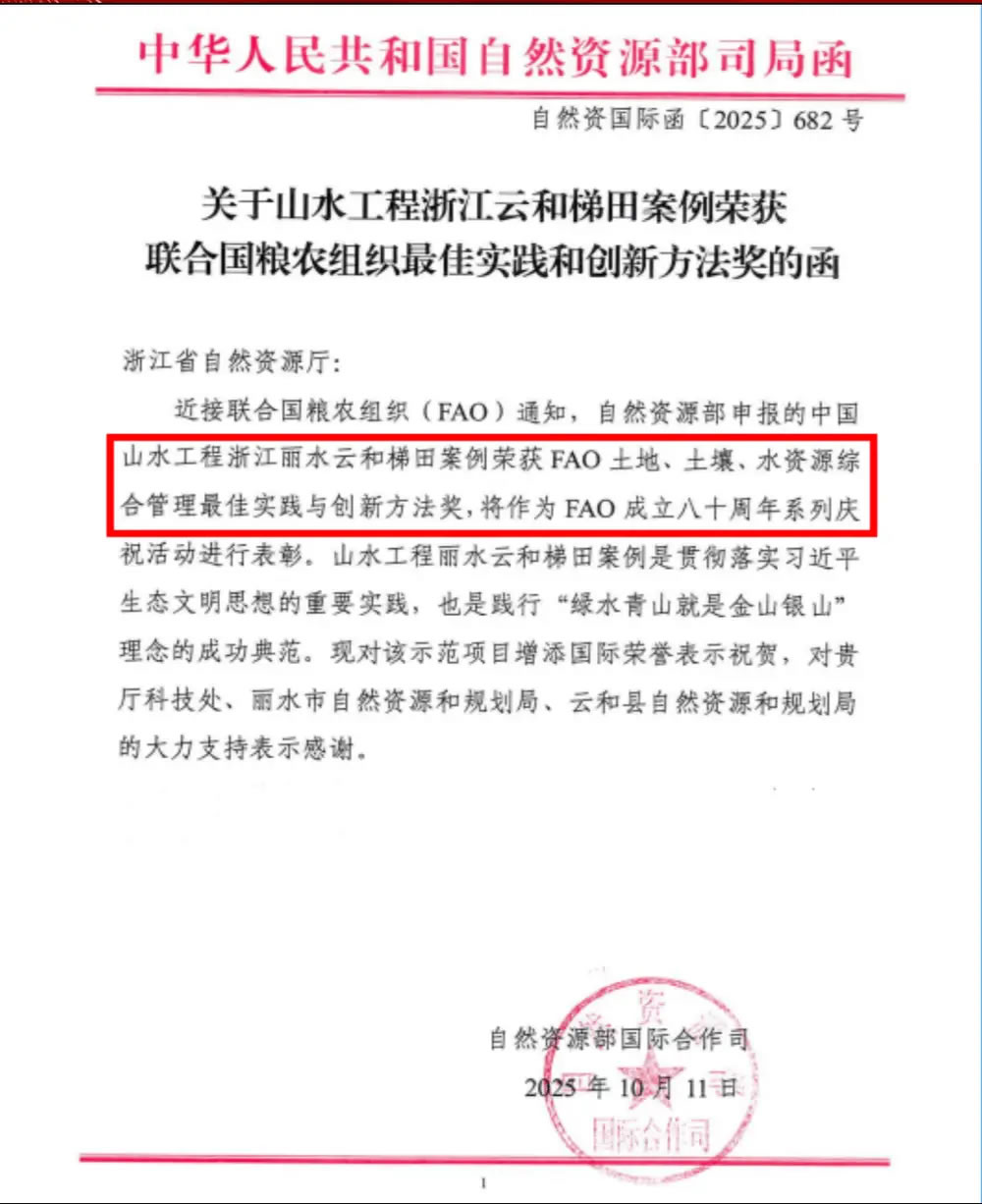 近日,中國山水工程浙江云和梯田項目榮獲聯(lián)合國糧農(nóng)組織最佳實踐和創(chuàng)新方法獎,并將作為聯(lián)合國糧農(nóng)組織(FAO)成立八十周年系列慶;顒舆M行表彰。