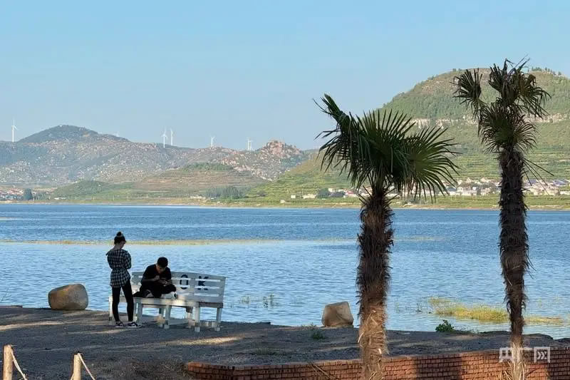 市民在巖馬湖邊休閑(央廣網(wǎng)記者 李舜 攝)