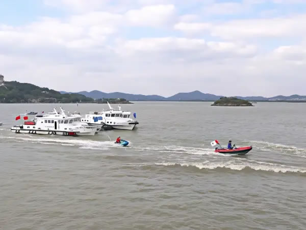 無錫市交通運(yùn)輸綜合行政執(zhí)法支隊(duì)、蘇州市交通運(yùn)輸綜合行政執(zhí)法支隊(duì)、常州市交通運(yùn)輸綜合行政執(zhí)法支隊(duì)、湖州市交通運(yùn)輸綜合行政執(zhí)法支隊(duì)、蘇州市交通運(yùn)輸應(yīng)急指揮中心、無錫市公安局水上分局、無錫太湖黿頭渚旅游集團(tuán)有限公司、無錫市藍(lán)天救援隊(duì)等兩省四市的交通運(yùn)輸部門、文旅企業(yè)、社會救援力量參加演練。