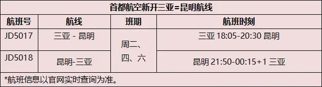 金秋航線再添新翼 首都航空計劃11月8日開通三亞往返昆明航線