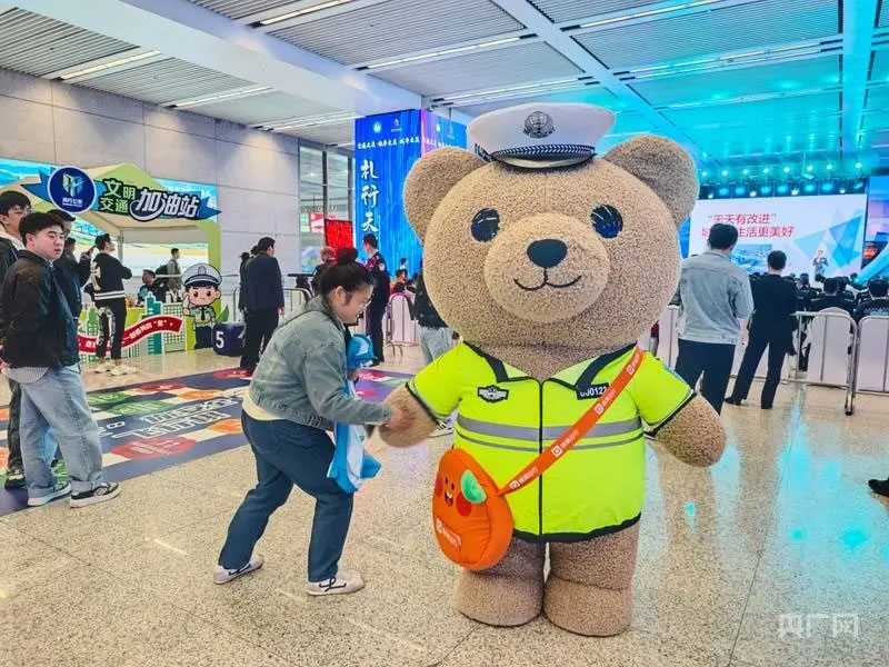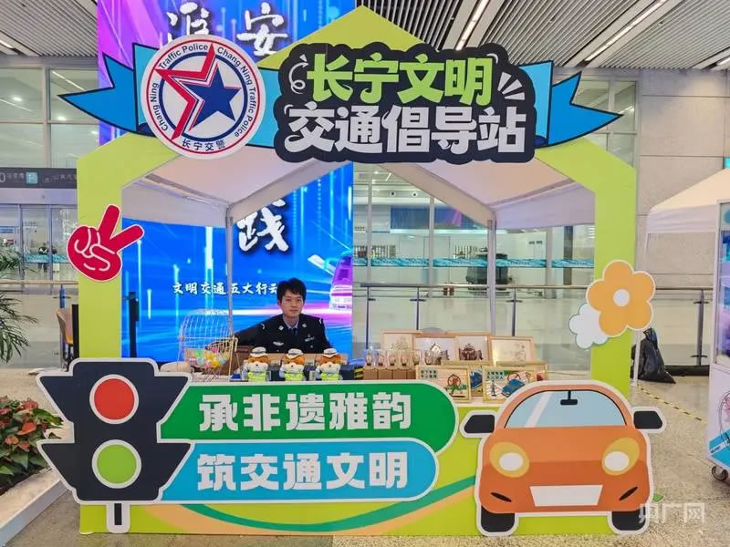啟動(dòng)儀式后,現(xiàn)場(chǎng)設(shè)置的多個(gè)互動(dòng)體驗(yàn)區(qū)吸引了大量市民駐足參與。文明交通游戲互動(dòng)區(qū)融合了快樂大轉(zhuǎn)盤、抓娃娃機(jī)、交通標(biāo)識(shí)猜謎等趣味項(xiàng)目;交通科技體驗(yàn)區(qū)則展示了包括高科技警用設(shè)備、警用無人機(jī)、安全駕駛AR模擬、酒駕測(cè)試眼鏡在內(nèi)的先進(jìn)裝備,讓市民直觀感受科技賦能交通管理的成效。文明實(shí)踐快閃店集中呈現(xiàn)了虹橋機(jī)場(chǎng)、虹橋火車站等窗口單位在文明實(shí)踐中的創(chuàng)新成果。