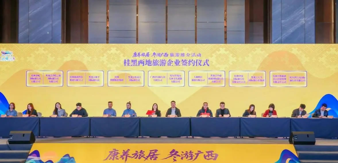 此次推介活動吸引了100多家桂黑兩地旅游企業(yè)進行深度交流,并開展桂黑兩地文旅企業(yè)產品對接會,達成多項合作。活動現(xiàn)場,7家廣西旅游企業(yè)與多家黑龍江省旅游企業(yè)成功簽約。