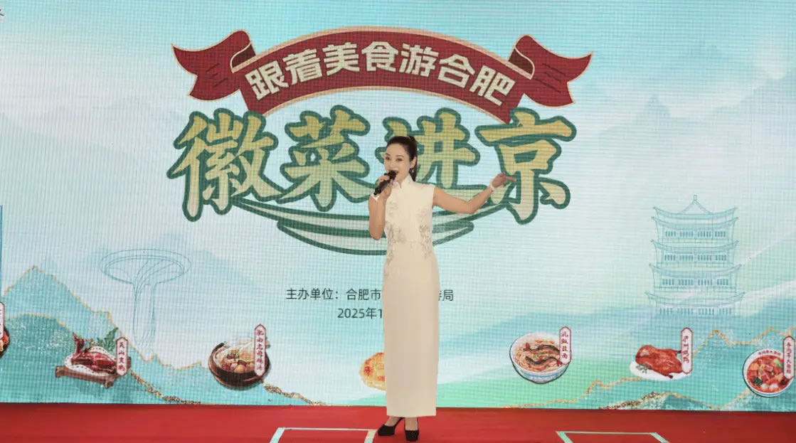 18:30,活動(dòng)正式拉開帷幕,美食宣傳片帶觀眾在線“品嘗”徽味的獨(dú)特魅力和徽廚的匠心故事;現(xiàn)場演繹的黃梅戲唱腔婉轉(zhuǎn),將江淮柔情融入京華夜色;合肥市文旅局代表登臺(tái)推介,帶眾人感受合肥這座“科里科氣”與“文里文氣”并存的城市魅力。