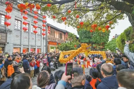 “移步換景,在老建筑群落之間看活生生的閩都文化,這一趟行程太‘值了’。”昨日下午,非遺舞蹈《錢箭舞》在三坊七巷“閃現(xiàn)”,讓來(lái)自浙江的游客顧女士看得如癡如醉,興之所至的她也隨著音樂一起舞動(dòng)。