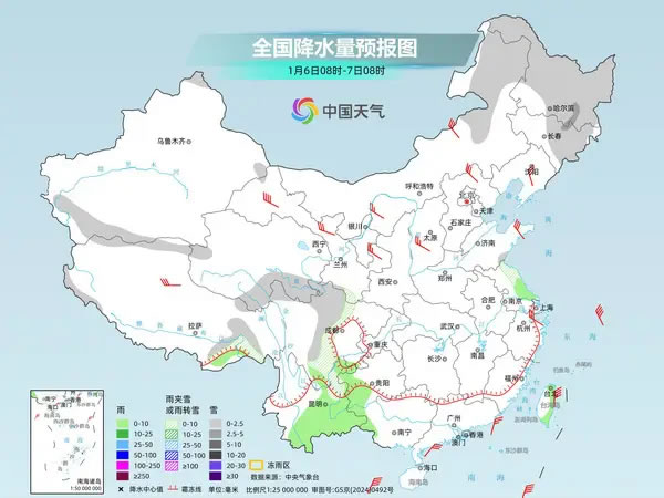 由于水汽條件較差,今起至周末,我國大部地區(qū)以晴天為主,但西南地區(qū)東部今后三天雨雪比較頻繁,另外,新疆、東北有分散的降雪。其中今天,新疆阿勒泰和西南部山區(qū)、青海南部、西藏東南部、四川盆地西部、云南東北部、東北地區(qū)大部、內(nèi)蒙古東部等地的部分地區(qū)有小到中雪或雨夾雪;云南東南部、貴州西部、江蘇東南部、臺灣島東部等地的部分地區(qū)有小雨。