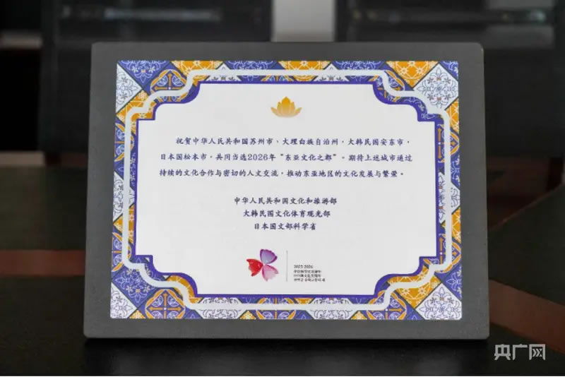 央廣網大理1月7日消息(記者 魏文青)近日,2026年“東亞文化之都”評選結果在北京揭曉,大理白族自治州成功當選,成為云南省首個獲此殊榮的城市,也為云南參與東亞城市文化交流打開新的門戶。