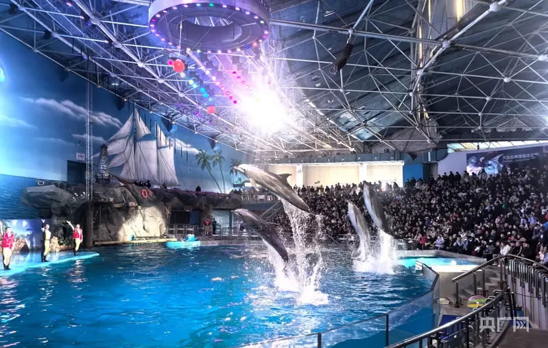 園區(qū)內(nèi)洋溢著喜慶的節(jié)日氣氛,來自全國(guó)各地的游客齊聚于此(央廣網(wǎng)發(fā) 大連虎灘海洋公園供圖)