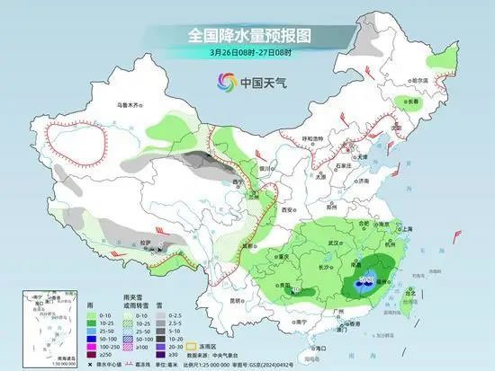 隨著低空急流明顯增強(qiáng),南方降雨進(jìn)入顯著時段。監(jiān)測顯示,25日8時至26日6時,湖北西南部、貴州東部、湖南北部、江西北部等地出現(xiàn)中到大雨,局地暴雨。此外,新疆東部、青海東部和南部、西藏東部、甘肅東南部、四川西北部等地部分地區(qū)出現(xiàn)小到中雪或雨夾雪,新疆、甘肅等局地大雪或暴雪。